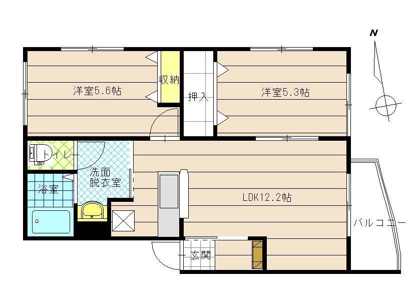 管理形態 管理人巡回  間取内容 2LDK 洋室5.6畳 洋室5.3畳 12.2畳